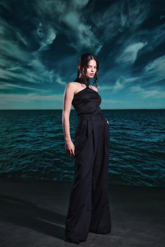 Wide linen trousers - Black