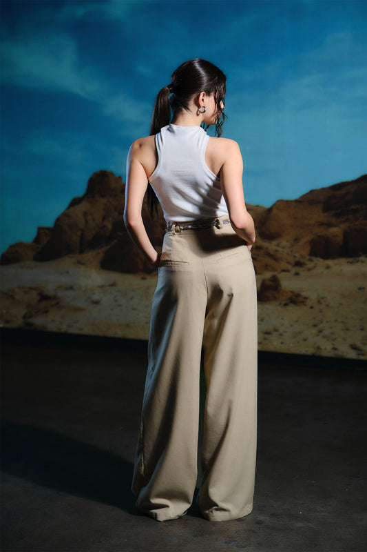 Wide linen trousers - Beige