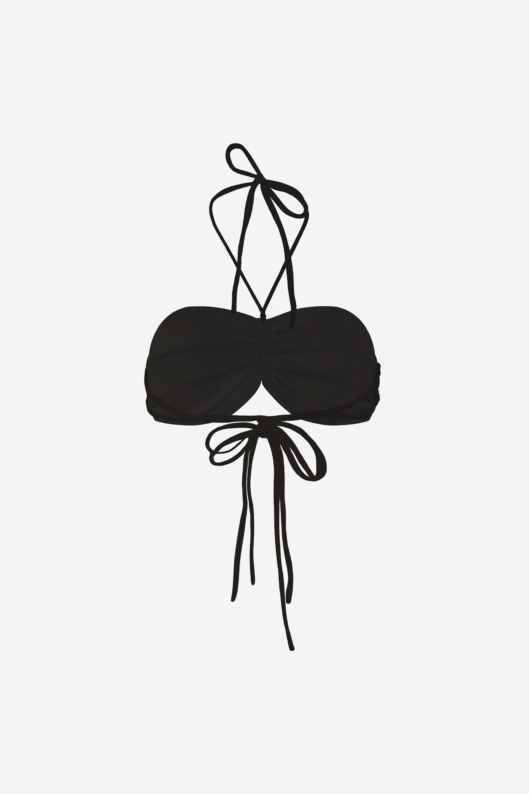 Горна част на модел BLACK OCEAN наличен в размери S, M и L. С елегантен набор в центъра на предната част, който дава допълнителен обем на гърдите, а тънките презрамки дават опцията да се регулират спрямо предпочитанията ви.