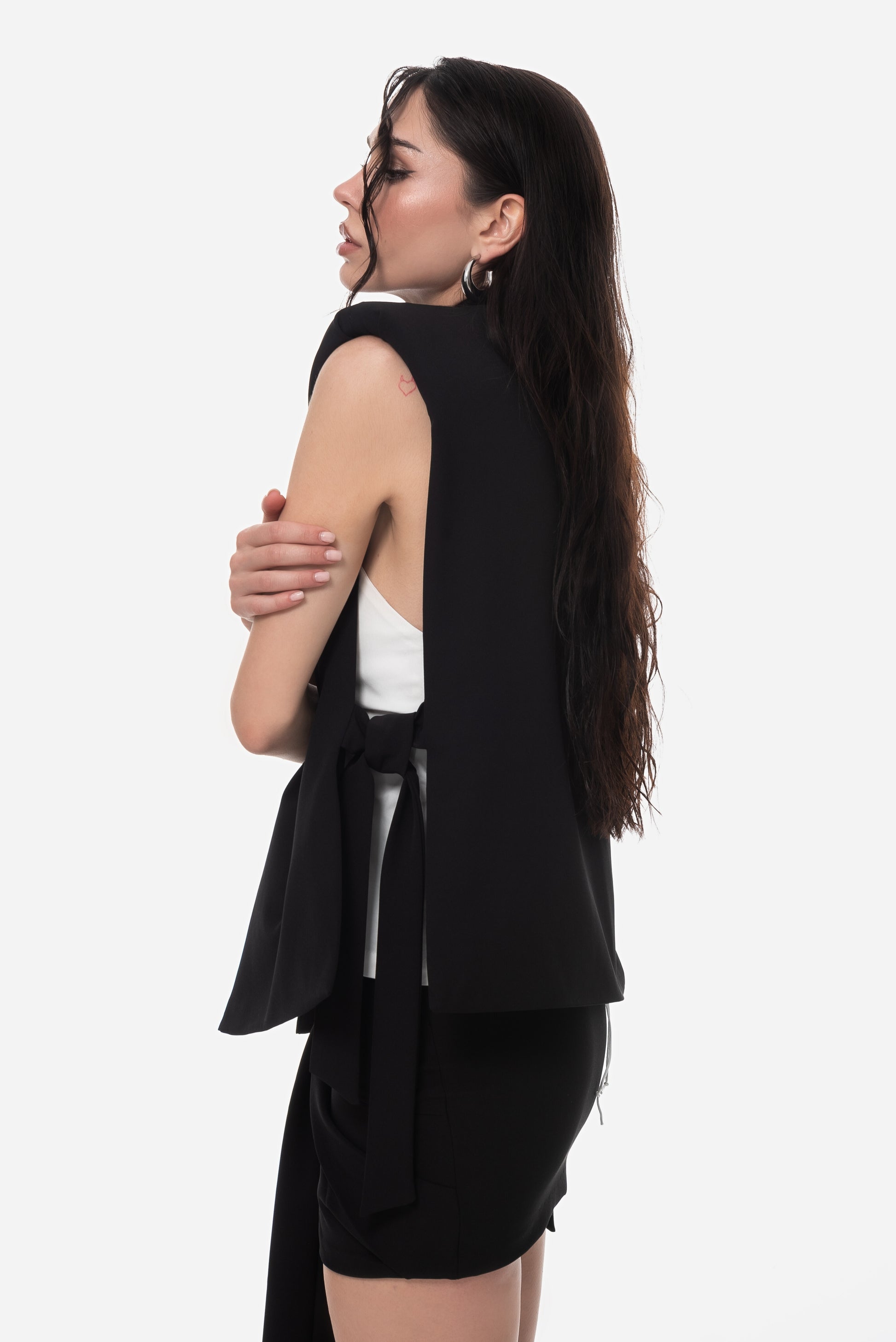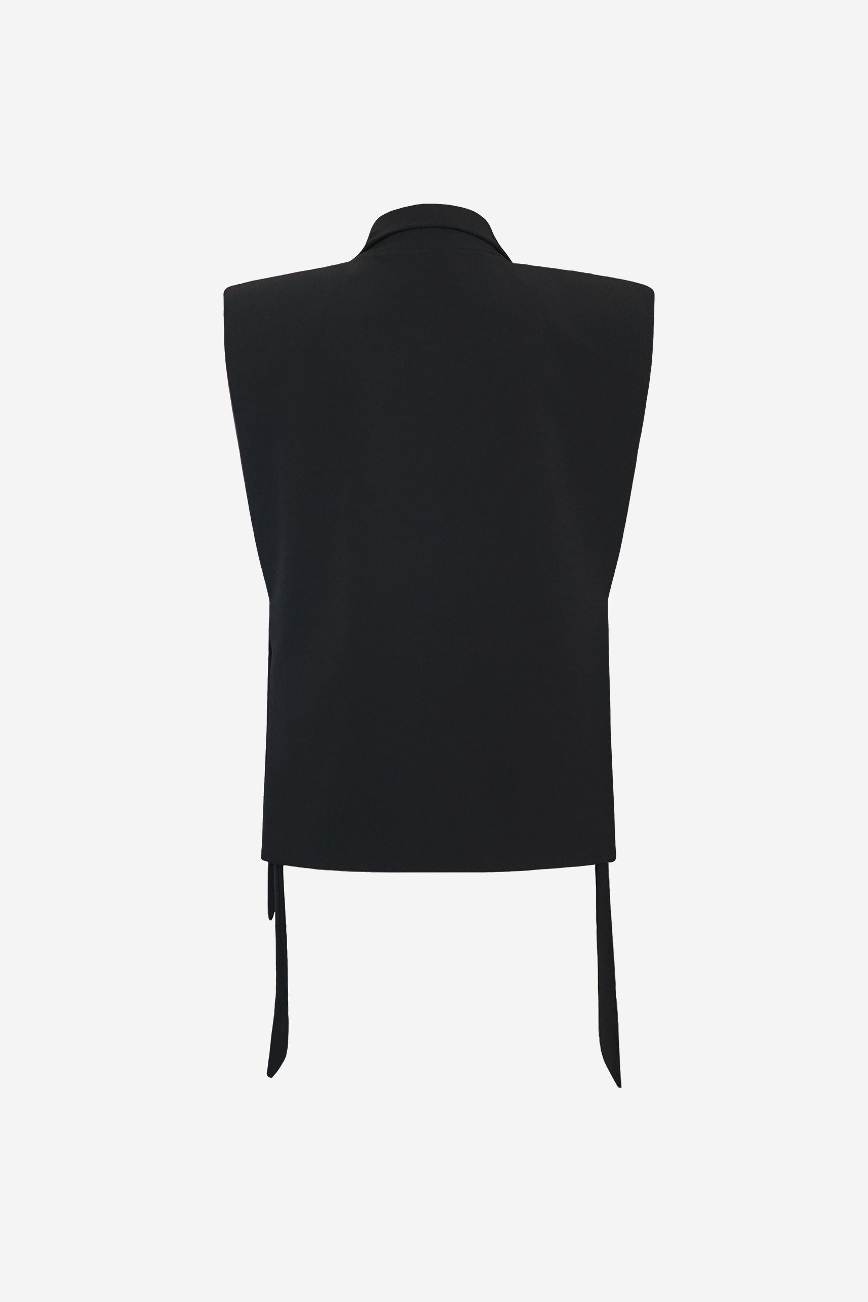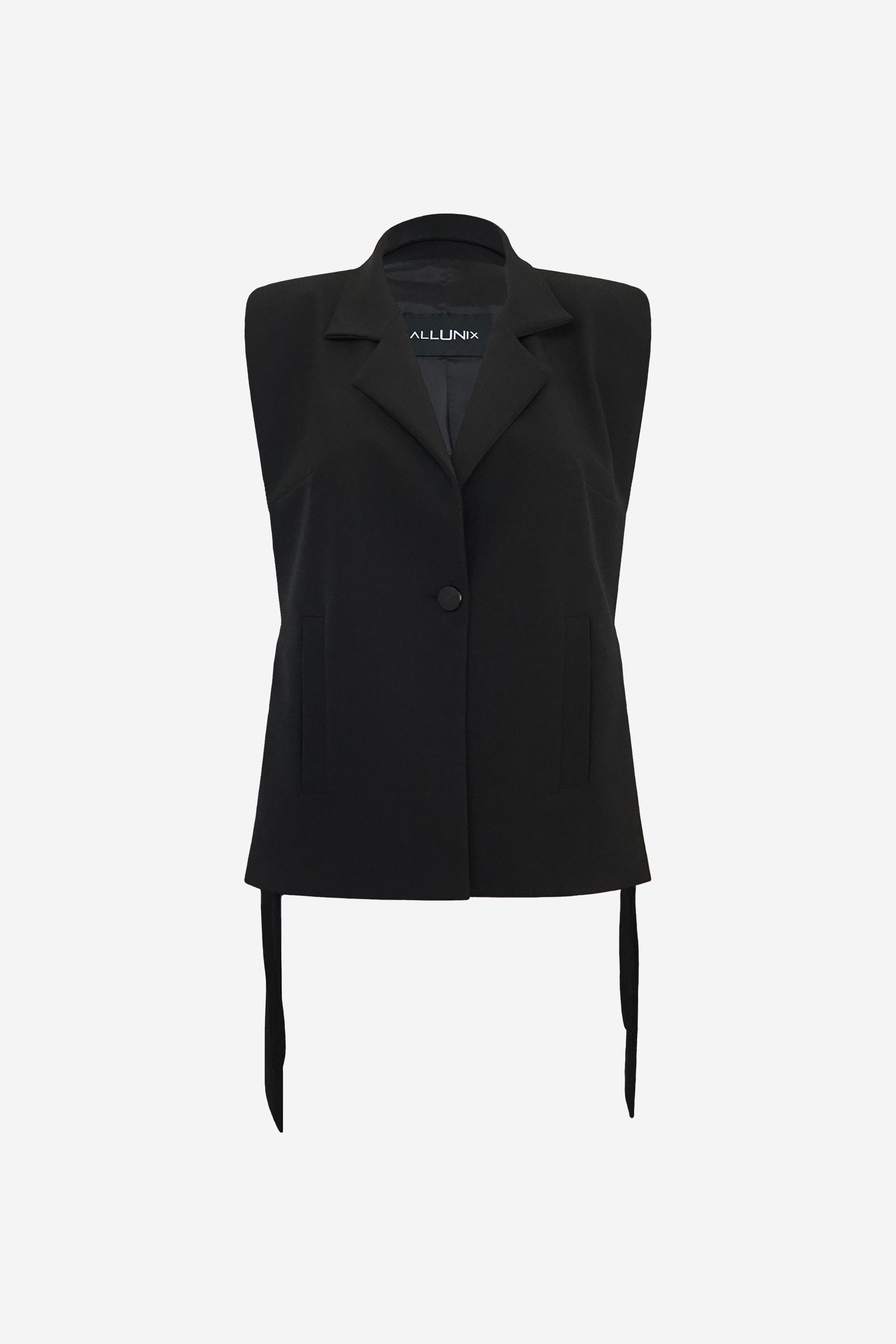 Елек с подплънки с хастар. Силуета е подходящ за жени с нормални или тесни рамене. Регулируеми връзки в страничен шев.